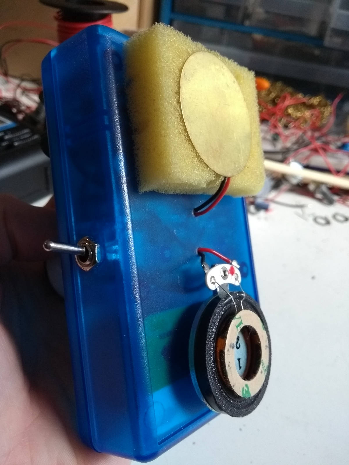A toggle switch bypasses the tactile button and keeps the gain to the maximum. To avoid very high piercing frequencies,