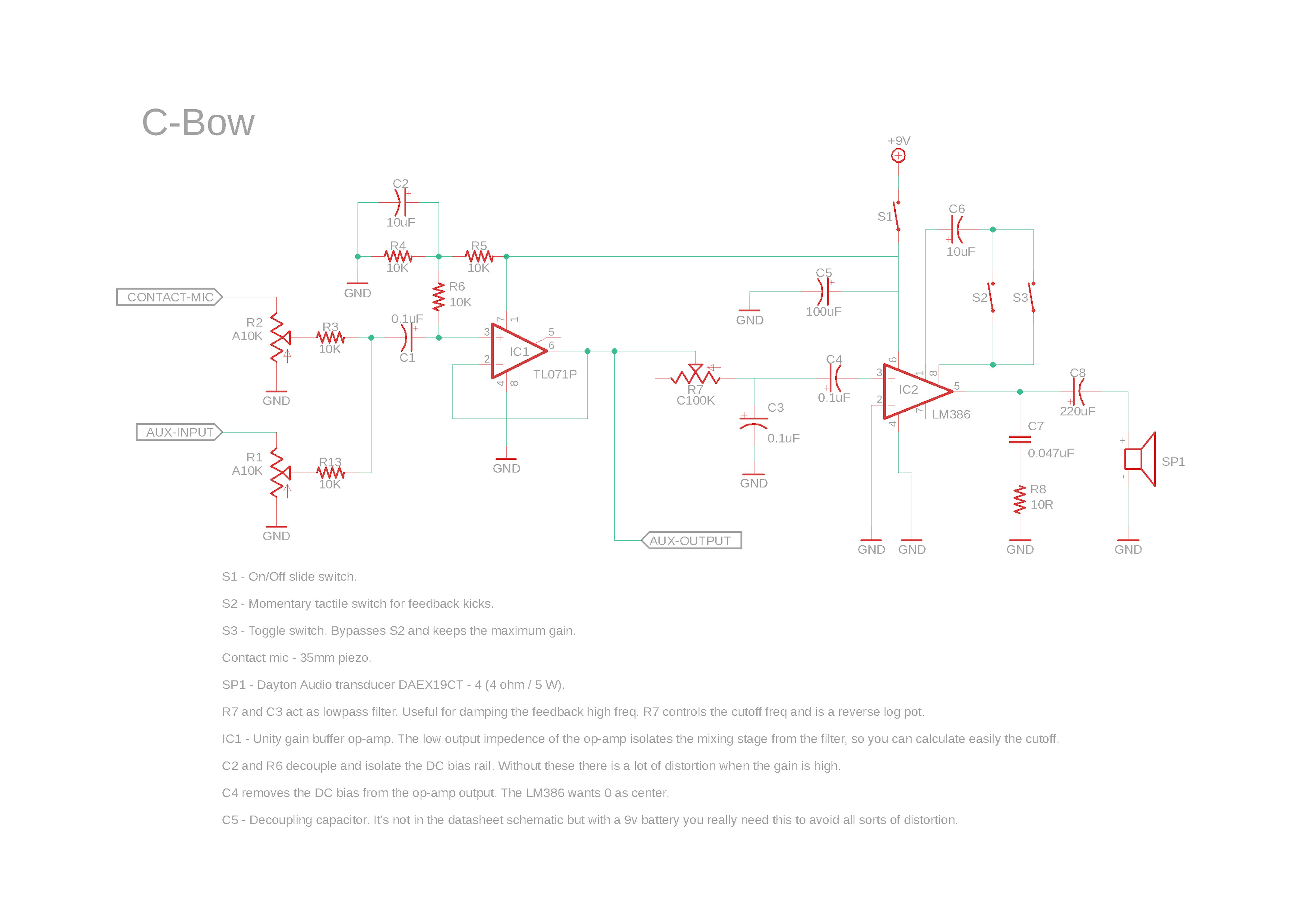 and a simple analog amplifier with filters. The sound comes entirely from the object c-bow makes resonate.