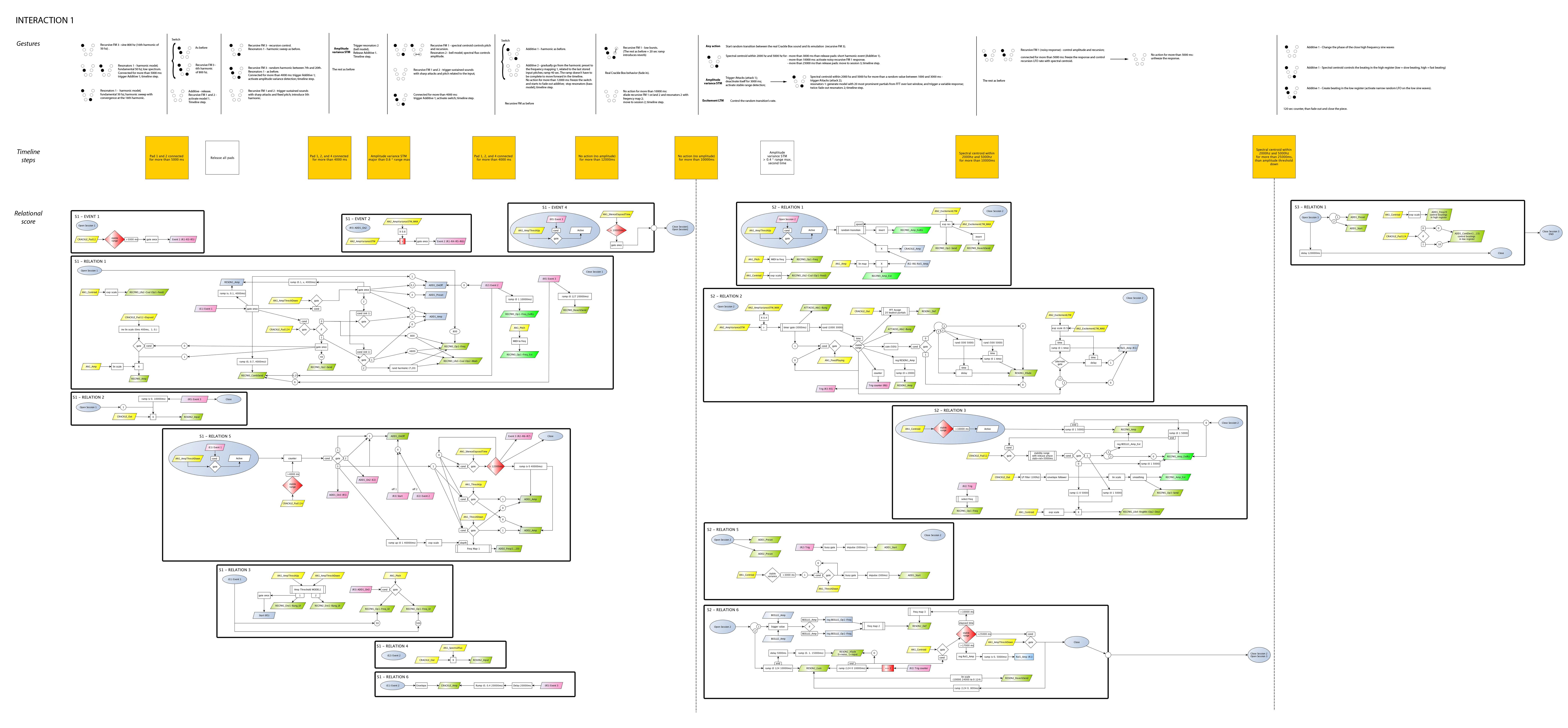 In this work, a guideline is the degree of influence the source has on the synthetic sound. The piece starts with the crackle box controlling harmonic sounds defined a priori, and gradually starts to affect the synthesis until all the pitch material and the durations are related to what happens or happened in performance. The second section is a mixture of predefined behavior and other forms of behavior that emerge from the performance; this section has no linear development. In the third section the relational aspect is brought to its bare minimal terms: the gestures leave only a small trace affecting the beatings in the upper and lower register.